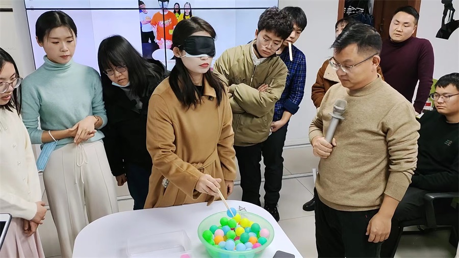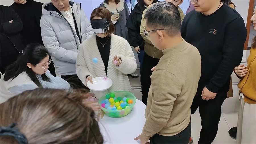 最后压轴的两个项目更是充满了挑战性和趣味性《蒙眼夹球》和《蒙眼颠球》,一路挑战、一路笑声不断,过五关斩六将,经过队员们的努力及团队完美协作,最终“机关枪队”全体队员战胜另外三队,获得最终胜利。