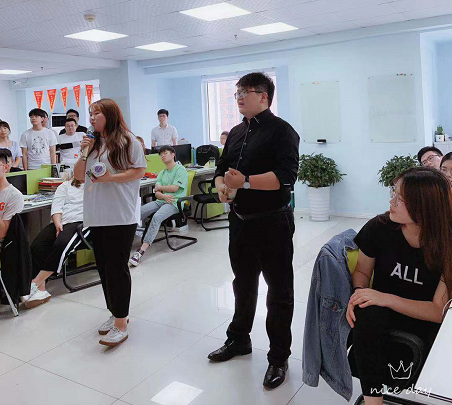 星期六下午1点,活动正式开始。本次活动还有一首开场曲,由商务二部的倩倩和商务三部的李晨一起演唱。
